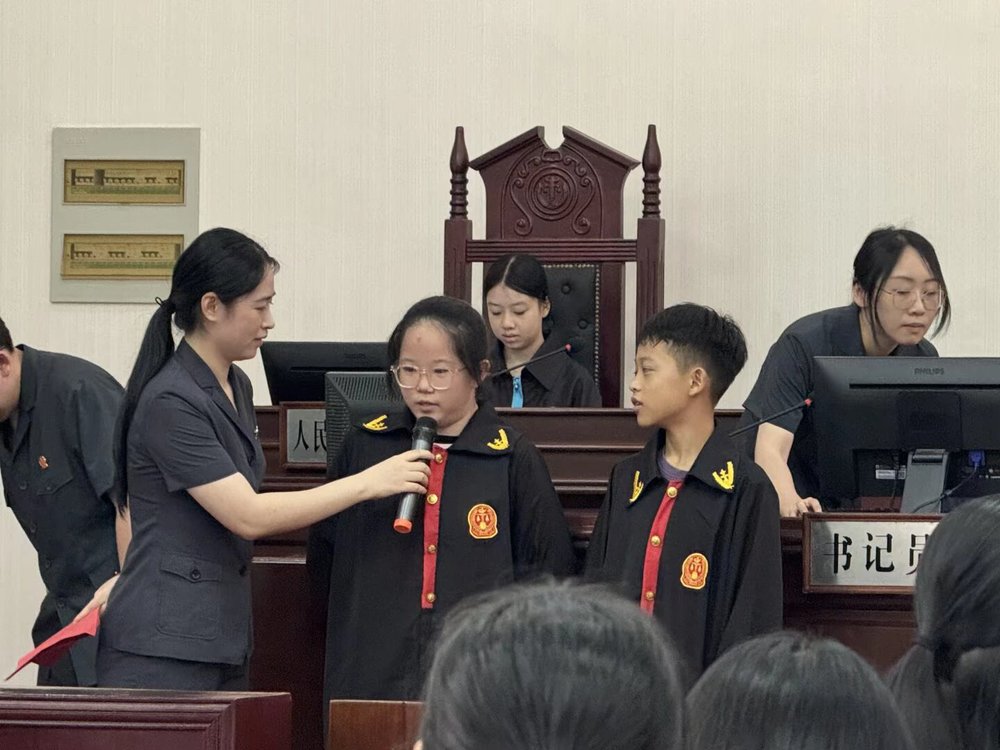 7月14日,ac米兰官方网站“童”韵传薪赴莆田新墩暑期实践队于涵江法院中开展法治护航·童心飞扬——“小小法官”体验日活动。此次活动旨在强化侨乡留守儿童法律意识和自我保护意识,深化校园法制教育。