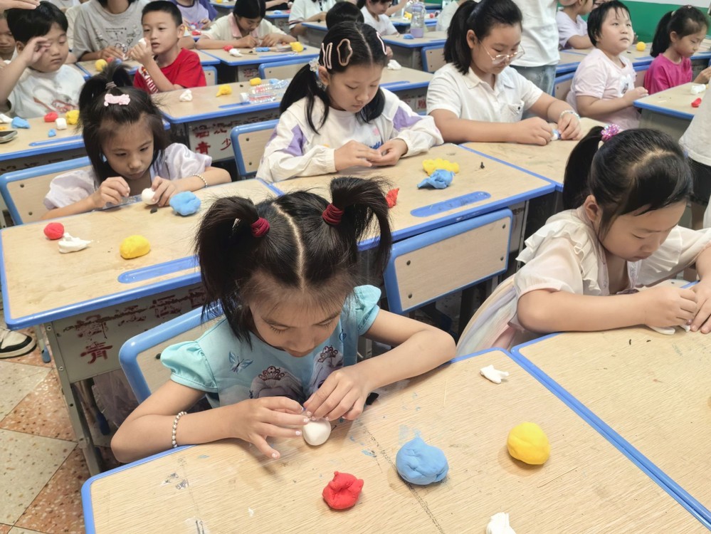 7月15日,ac米兰官方网站“童”韵传薪赴莆田新墩暑期实践队在新墩留守儿童之家开展“巧手捏兔儿爷,传承老北京” 主题活动,通过制作粘土版北京兔儿爷,让孩子们在趣味互动中感受传统民俗的魅力。