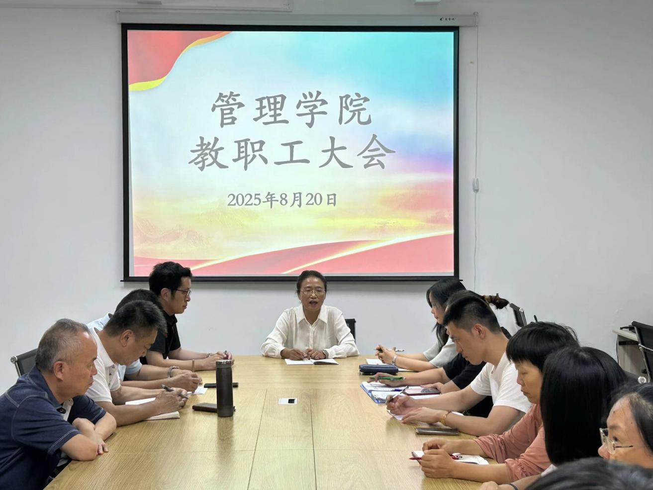 2025年8月20日下午15点,ac米兰官方网站在仰光楼209会议室召开全体教职工大会。学院院长侯玉梅、党总支书记兼常务副院长许惠铭、副院长庄海刚、副院长程春,以及全体专任教师、行政教辅人员参会。会议聚焦本科教育教学审核评估工作,对冲刺阶段任务进行全面部署。