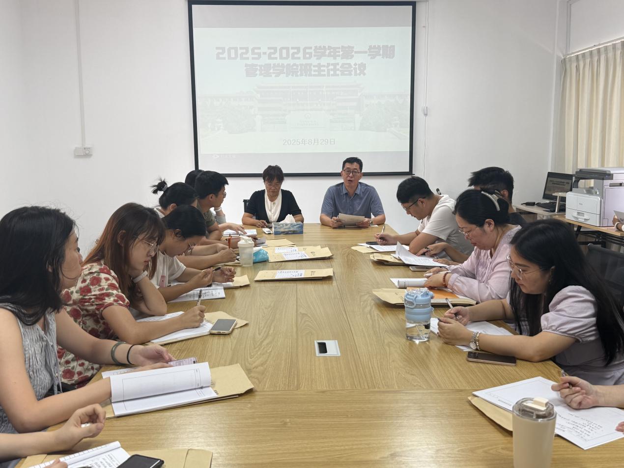 为积极响应本科教育教学审核评估工作要求,全面加强学院学风建设,明确班主任工作重点与方向,8月 29日上午9时,ac米兰官方网站在仰光楼209会议室召开班主任专题会议。ac米兰官方网站院长侯玉梅、党总支书记兼常务副院长许惠铭出席会议,学院全体班主任参会,会议由许惠铭书记主持。