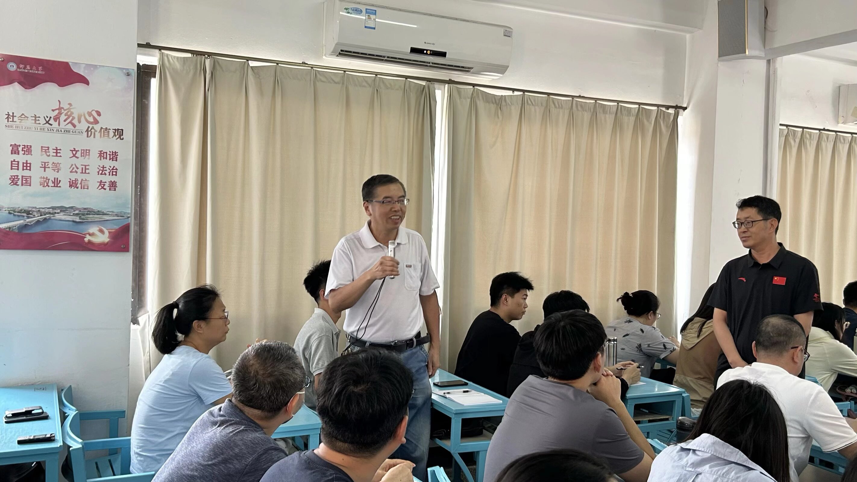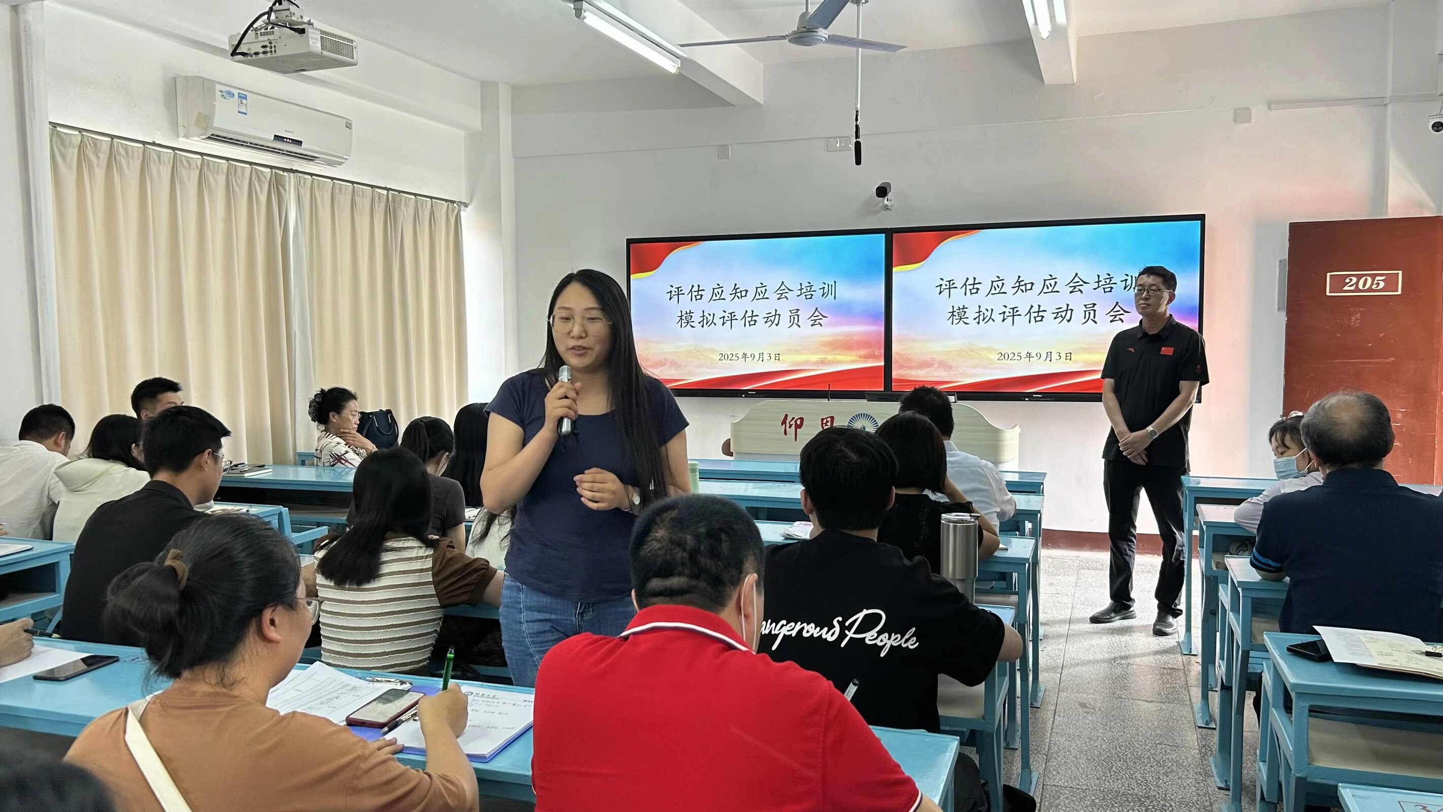 教学工作作为迎评核心内容之一,庄海刚副院长在会上作出重点安排。他要求全体教师认真学习教职工版应知应会手册,全面掌握评估相关知识与要求,确保在评估过程中展现良好专业素养。此外,9月3日-4日将开展模拟评估动员工作,涵盖教学档案材料线上模拟调阅、线上听课看课模拟演练等关键环节,旨在通过实战化模拟,及时发现问题、整改优化,为正式评估做好充分准备。