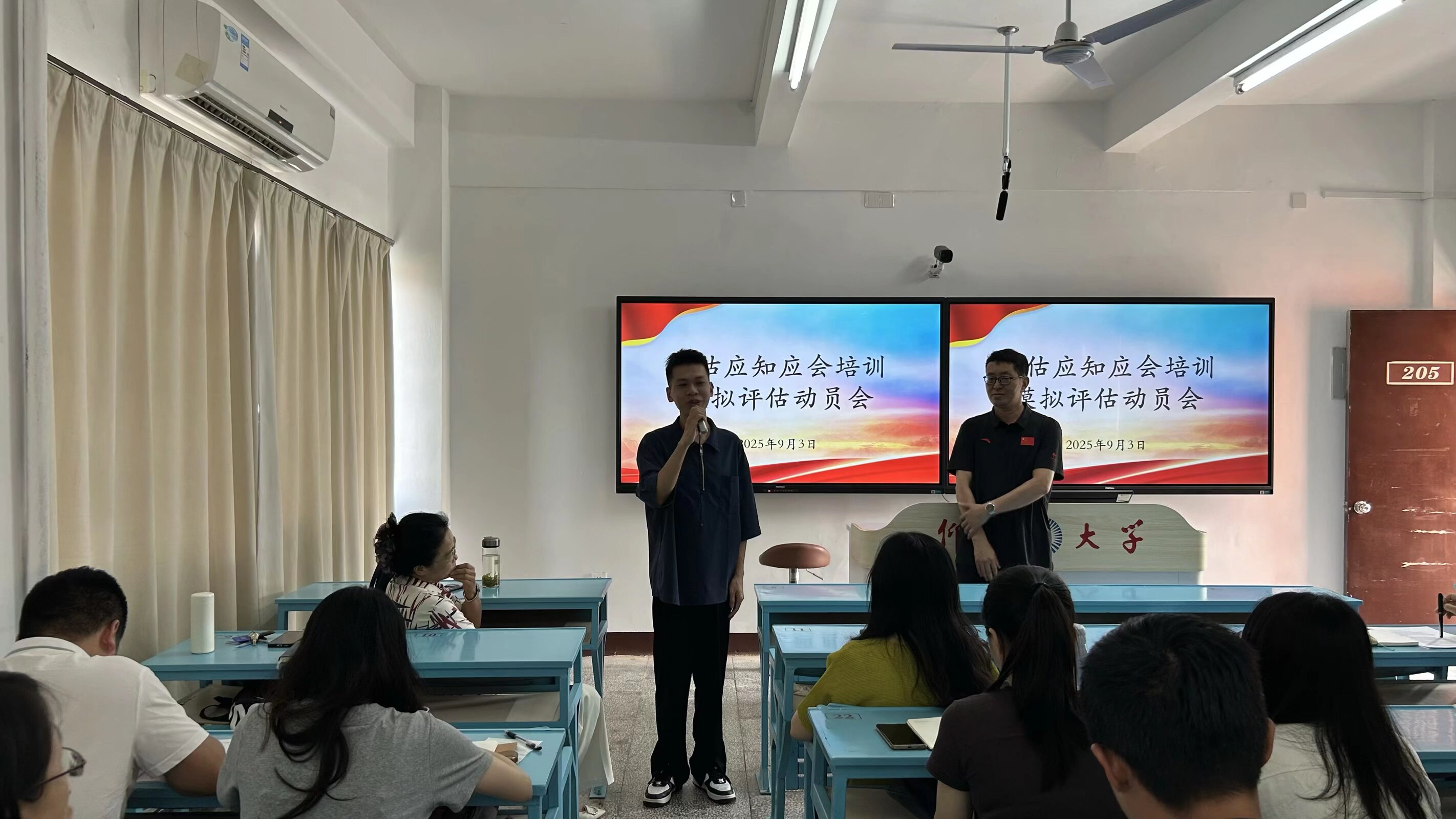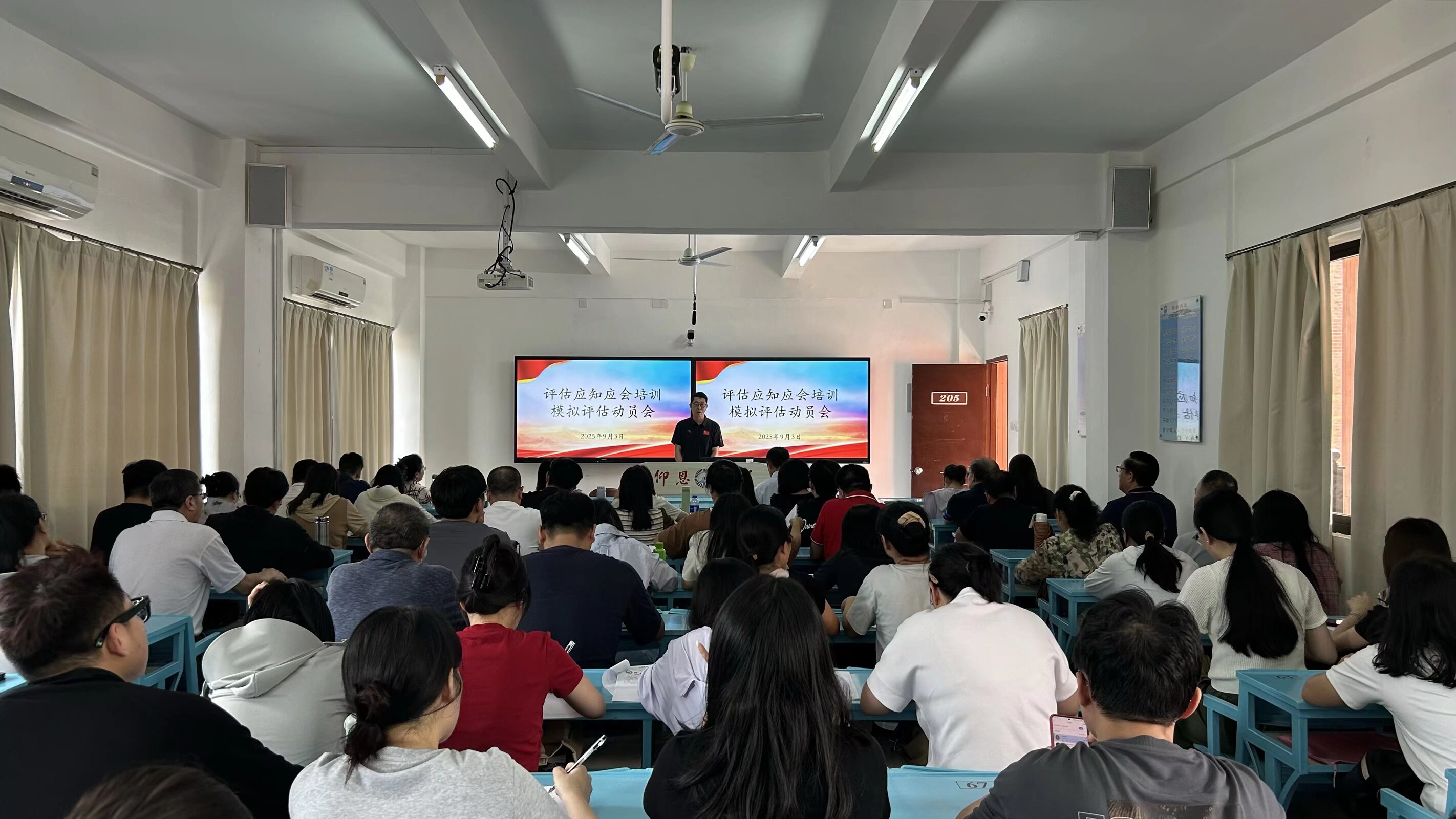 为扎实推进迎评工作,明确下一阶段工作重点,凝聚全院教师力量,9月3日下午2点,ac米兰官方网站在吉龙楼205教室隆重召开评估应知应会培训模拟评估动员大会。ac米兰官方网站全体教师参会,会议由学院党总支书记兼常务副院长许惠铭主持。