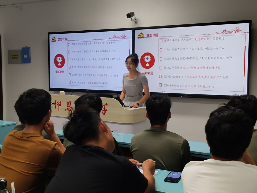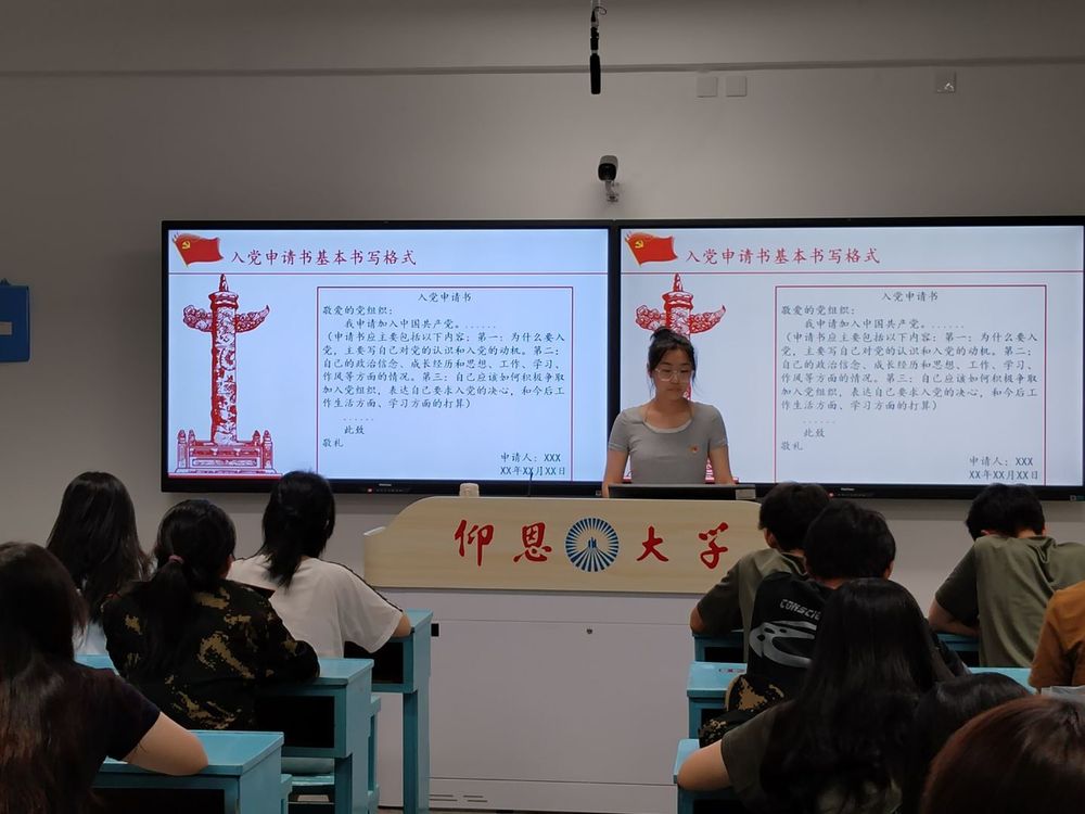 活动伊始,支部成员介绍了支部基本情况。随后,讲解了“教育有力、管理有力、组织有力、凝聚有力”的支部工作特色,以及展示了党员返乡志愿、毕业班党员教育大会等支部活动,借助微博、抖音、微信公众号等新媒体,展示党员风采。核心环节中,支部代表重点解读入党程序与要求,从提交申请书到预备党员转正的8个步骤清晰明了,重点强调了如规范格式等注意事项。最后,在互动环节,新生们积极提问,党员们结合自身经历,耐心解答。