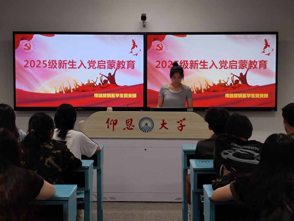 9月16日,市场营销系学生党支部在共和楼教室开展新生入党启蒙教育活动,全体党员参加。