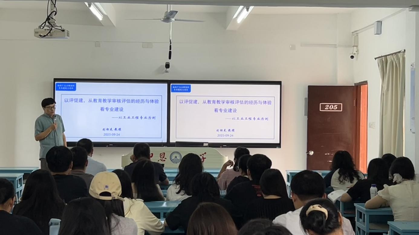 分享伊始,刘松先教授以自身参与评估的经历为切入点,阐明本次分享旨在通过直观的评估体验交流,为全院专业建设提供实践参考。他着重解读了本科教育教学审核评估“以评促建”的核心指导思想,强调评估并非终点,而是推动专业高质量发展的重要契机。