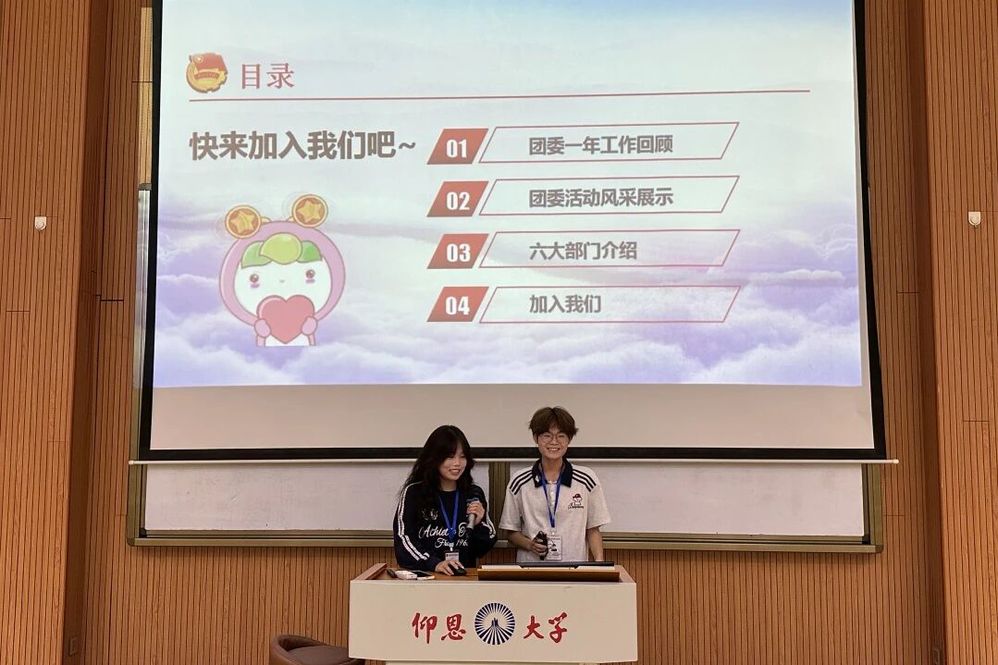 宣讲会伊始,ac米兰官方网站团委负责人首先介绍团委组织架构,明确办公室、组织部等六个部门及5个系团总支的核心定位,各部门干部结合实例,从整体组织架构的清晰呈现到具体活动成果的直观展示,新生们充分了解到团委对青年的引领作用与强大影响力。随后,学生会学生负责人、心理工作站学生负责人、融媒体中心负责人蔡婷婷老师依次上台,分别讲解所在组织的职能分工与特色工作。各负责人还共同回顾2024年7月至2025年6月的工作实效,并结合实例详解统筹策划、团务管理、宣传推广、心理服务等职能亮点,让新生清晰感知四大组织对青年的引领作用与影响力,为后续纳新奠定基础。