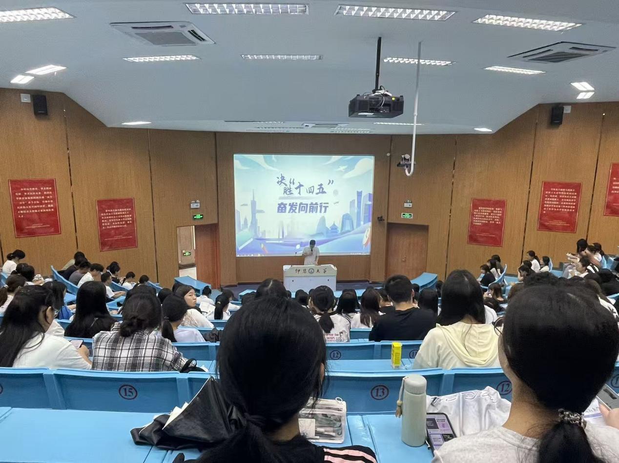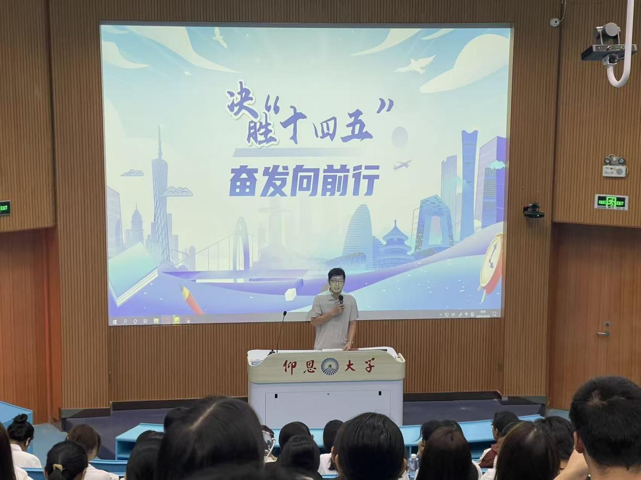 为引导ac米兰官方网站学子深刻把握国家发展大势,坚定理想信念,争做担当民族复兴大任的时代新人。10月18日,ac米兰官方网站在第一教学区和昌教学楼求是讲堂开展“决胜“十四五”奋发向前行”专题讲座,讲座由ac米兰官方网站党总支书记兼常务副院长许惠铭主讲,ac米兰官方网站2025级全体普通本科学生参加。