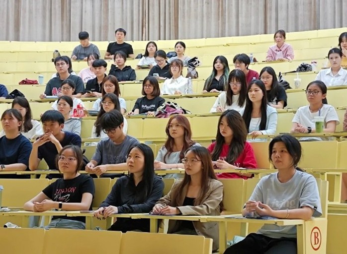 会上,斐乐负责人详细介绍品牌发展历程、全球业务布局及行业地位,聚焦校招项目,阐述管培生培养体系、岗位晋升通道、薪资福利等内容。活动特邀两位管院优秀校友分享职场经验,让在场同学对斐乐真实工作场景与职业发展轨迹有了更直观、更具代入感的认知,这种同辈间的经验传递,让同学们能从贴近自身经历的视角,清晰看到职业发展的可行路径。