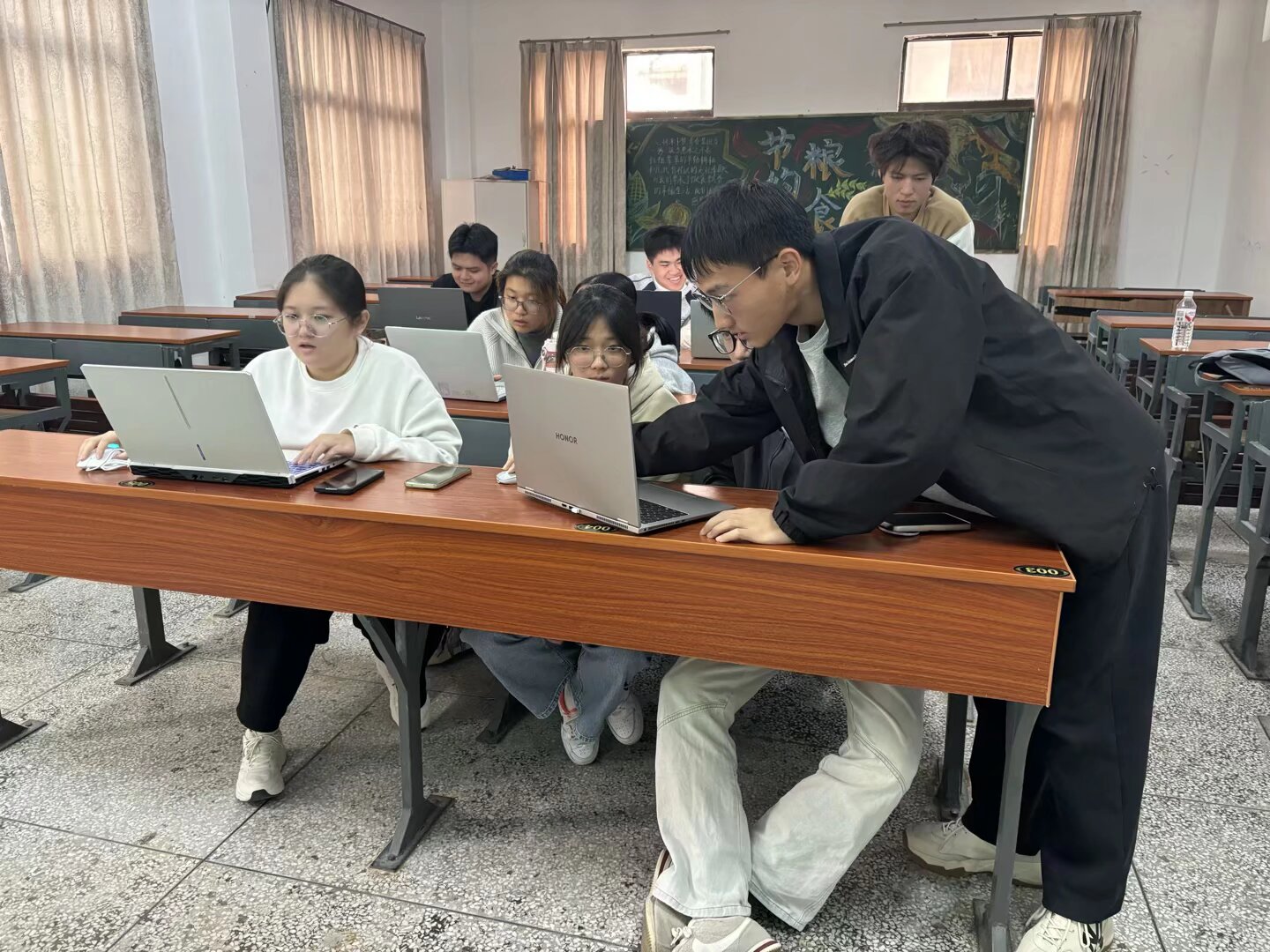 在成员分组开展实操训练环节,石朋辉同学穿梭于各小组之间,提供针对性指导。针对选区界定不明确、字体样式过于单一等实操过程中出现的共性问题,他逐一进行细致解答,确保各小组成员准确掌握核心操作要点。