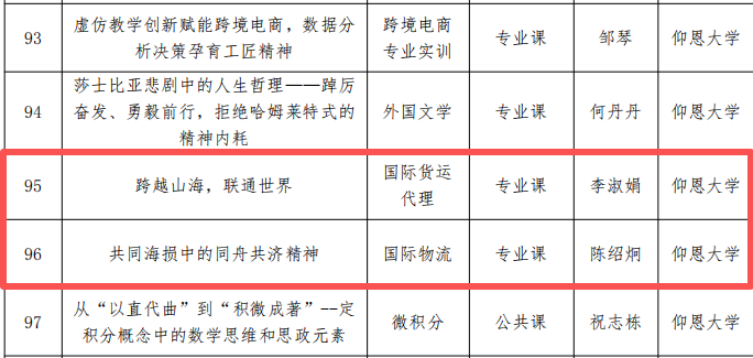 近日,福建省高校课程思政教育联盟公布了第三批课程思政优秀教学案例征集入选名单,我院物流管理系李淑娟老师撰写的《跨越山海,联通世界》和陈绍炯老师撰写的《共同海损中的同舟共济精神》成功入选优秀教学案例。