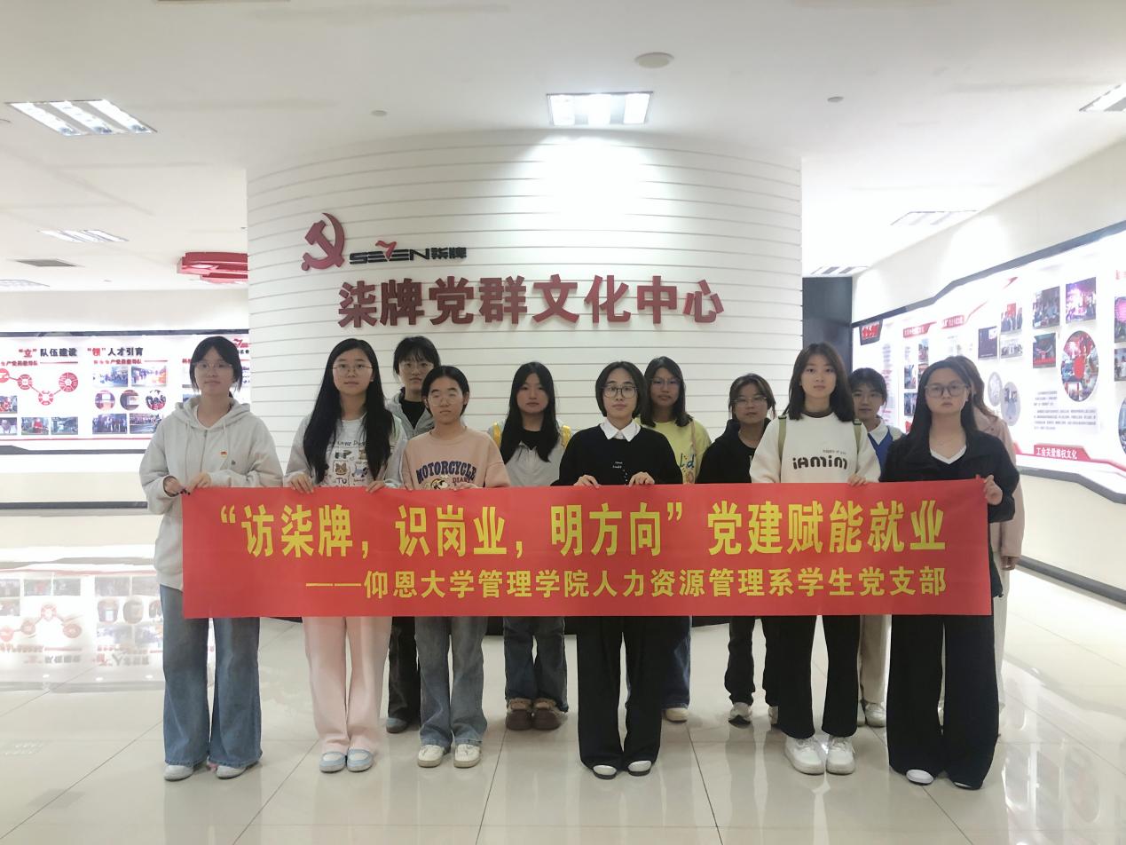 为深化党建与就业工作融合,帮助支部成员精准对接行业需求、明晰职业发展方向,12月24日,人力资源管理系学生党支部组织开展“访柒牌,识岗业,明方向”主题实践活动,带领支部成员走进泉州本土龙头企业柒牌集团,沉浸式感受企业魅力与职场氛围。