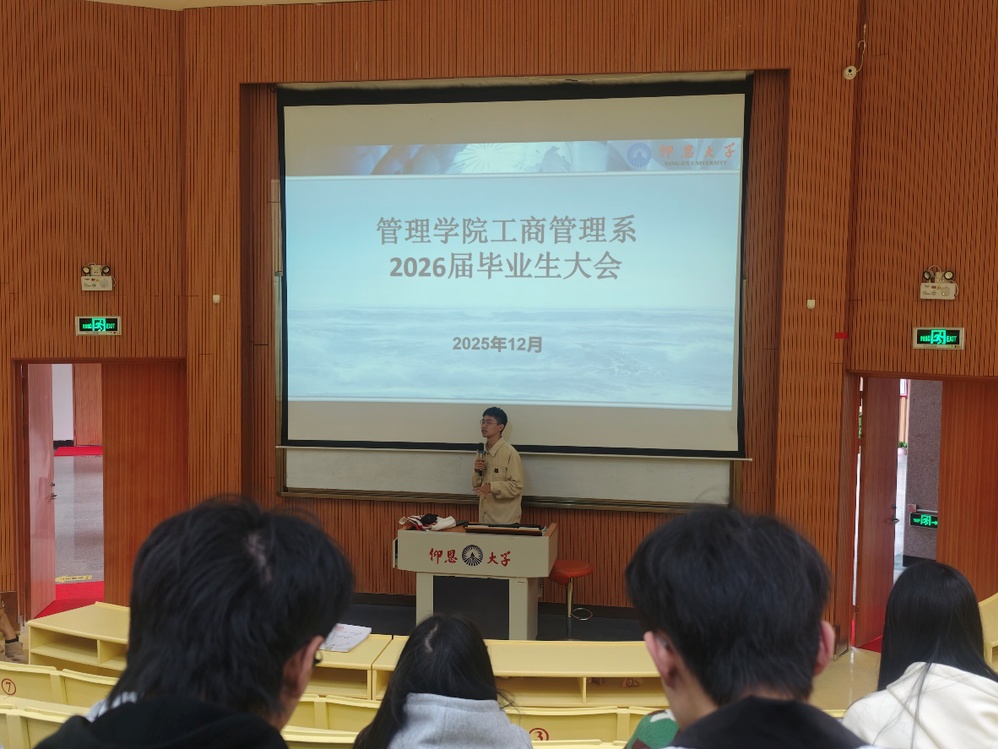 为切实推进2026届毕业生就业工作,精准开展应届毕业生就业指导服务,助力毕业生全面认清当前就业形势、深入理解相关就业政策、熟练掌握求职核心技巧并树立科学理性的就业观念,12月22日下午,工商管理系于ac米兰官方网站第一教学区和昌教学楼致知讲堂举办2026届毕业生大会。